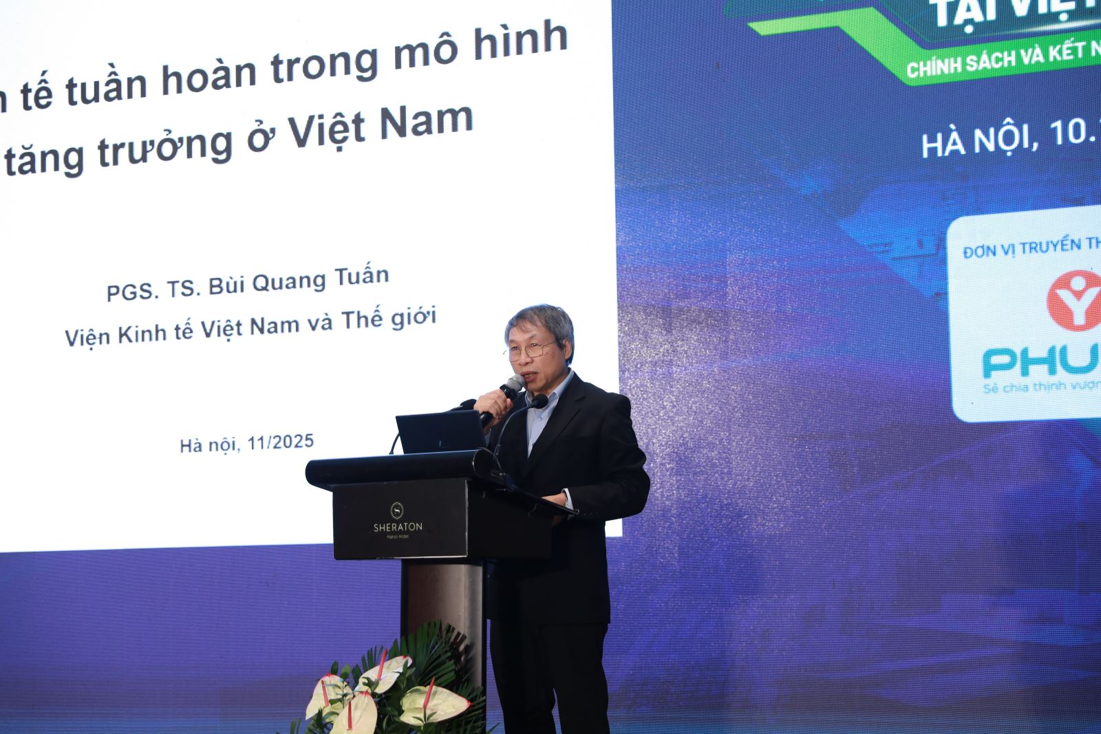Phát biểu khai mạc, GS.TS Lê Văn Lợi - Chủ tịch Viện Hàn lâm Khoa học xã hội Việt Nam khẳng định: Kinh tế tuần hoàn không chỉ là một khái niệm mà là kiến trúc phát triển mới của Việt Nam trong chuyển đổi kép – chuyển đổi số, chuyển đổi xanh. Đây là con đường tất yếu để chúng ta giảm phụ thuộc tài nguyên, cắt giảm phát thải, nâng cao hiệu suất sử dụng năng lượng và vật liệu, đồng thời mở ra thị trường, việc làm và chuỗi giá trị mới mang tính bền vững.