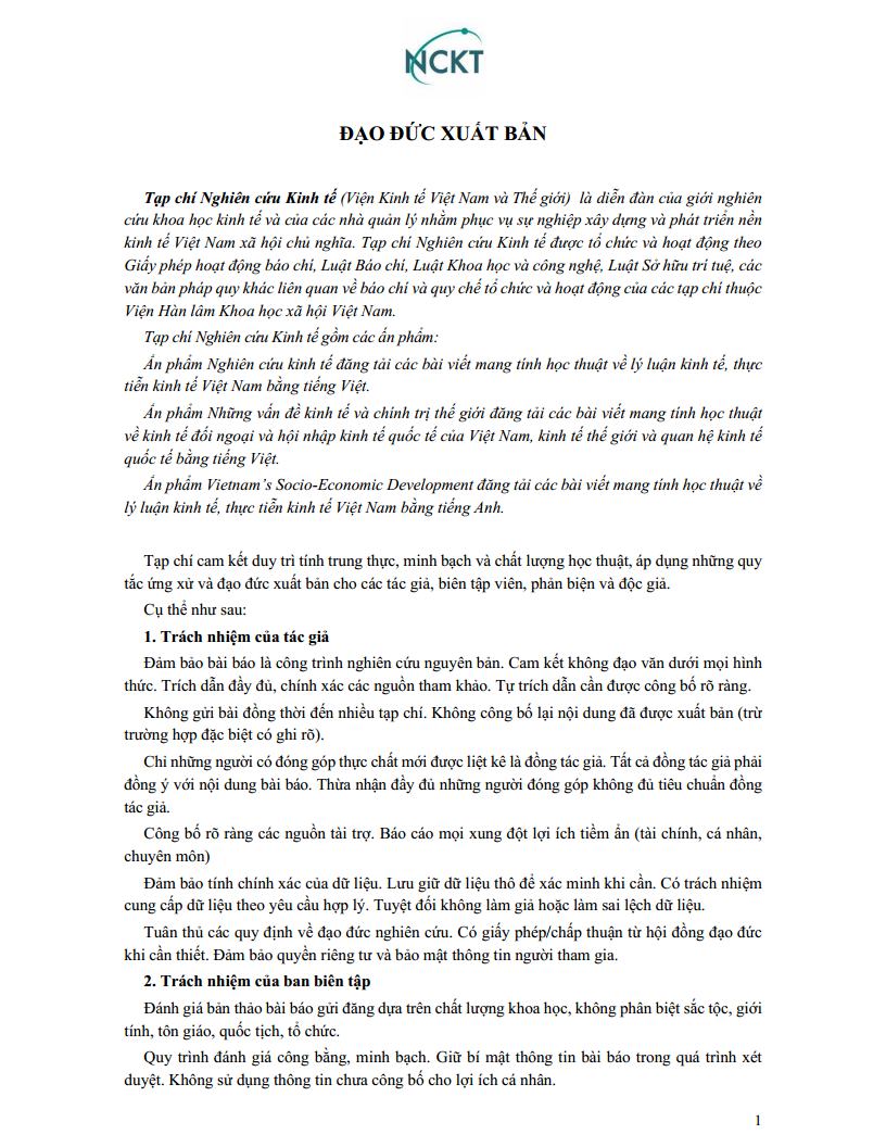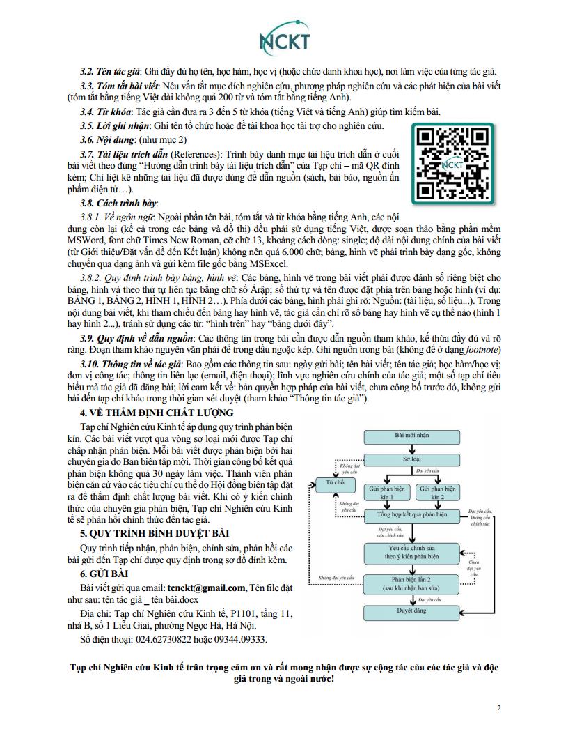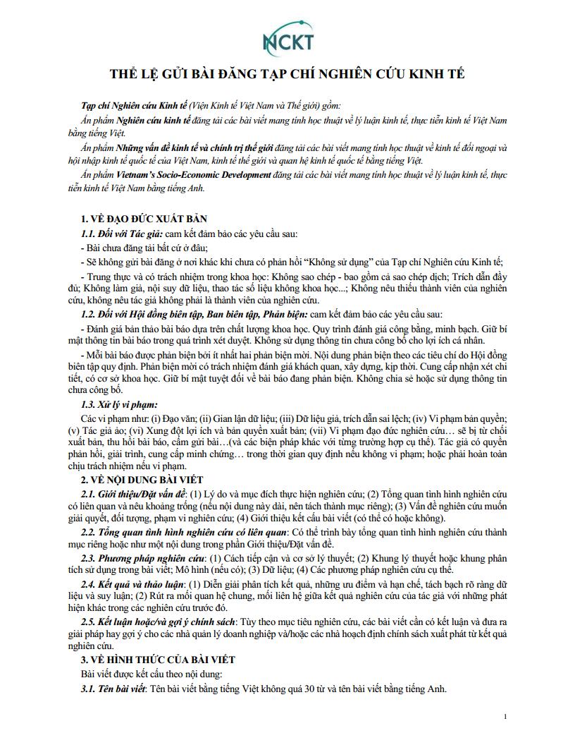 THỂ LỆ GỬI BÀI ĐĂNG TẠP CHÍ NGHIÊN CỨU KINH TẾ: